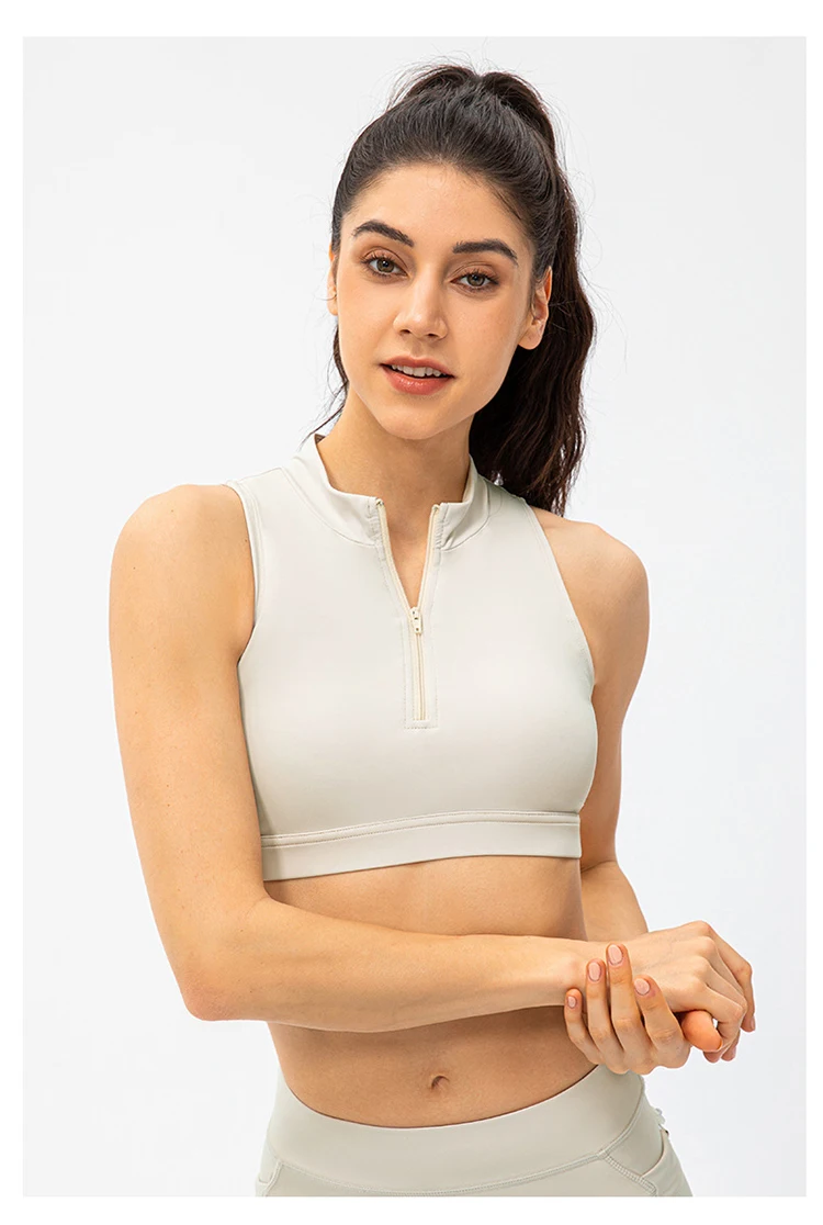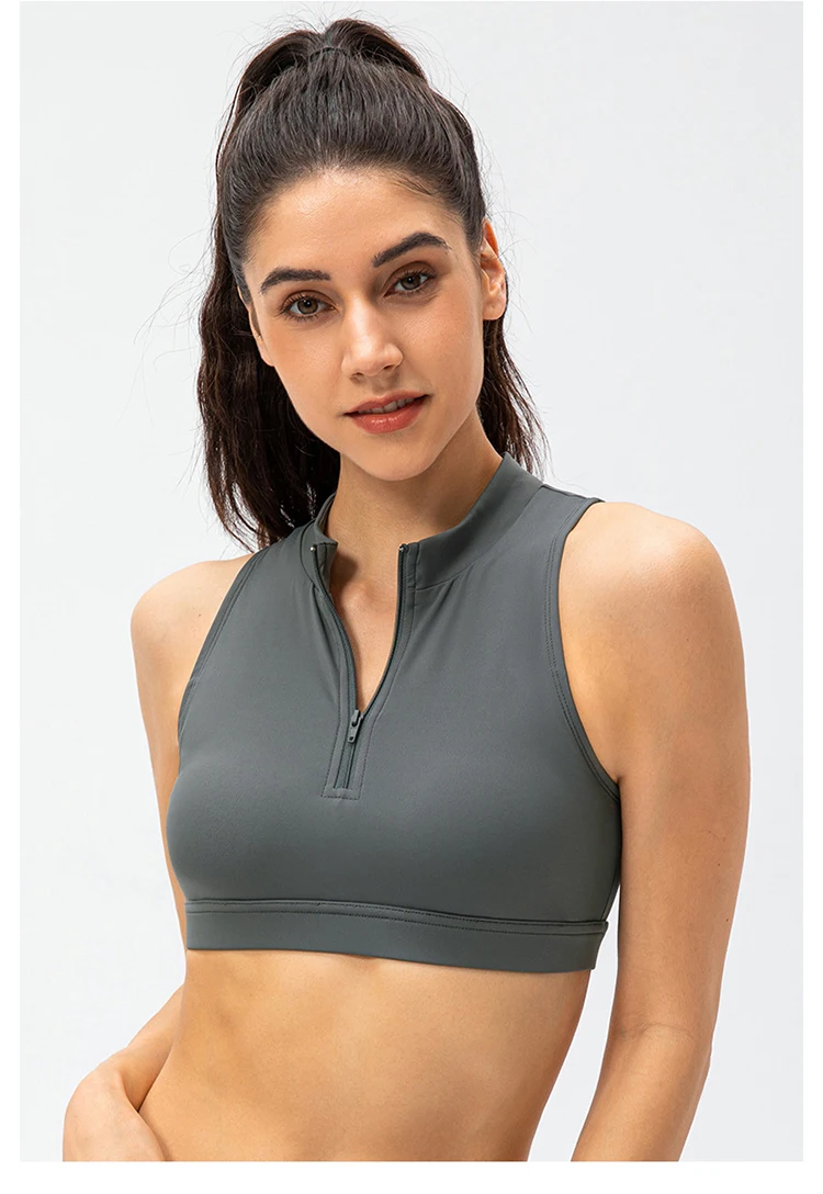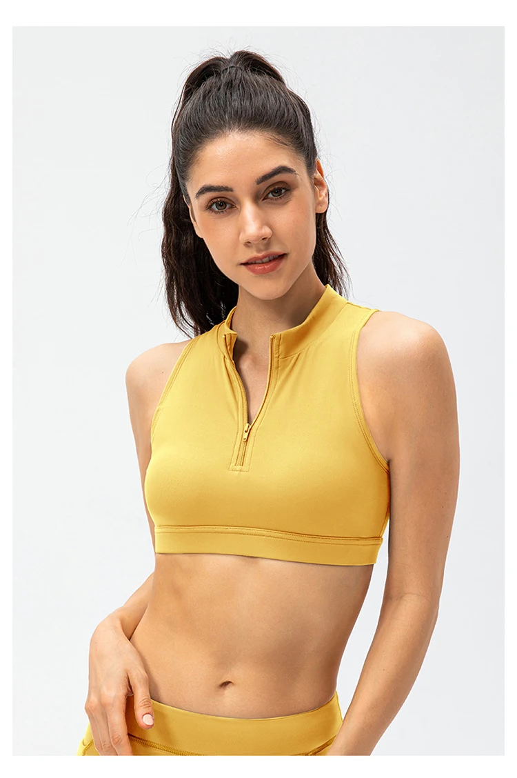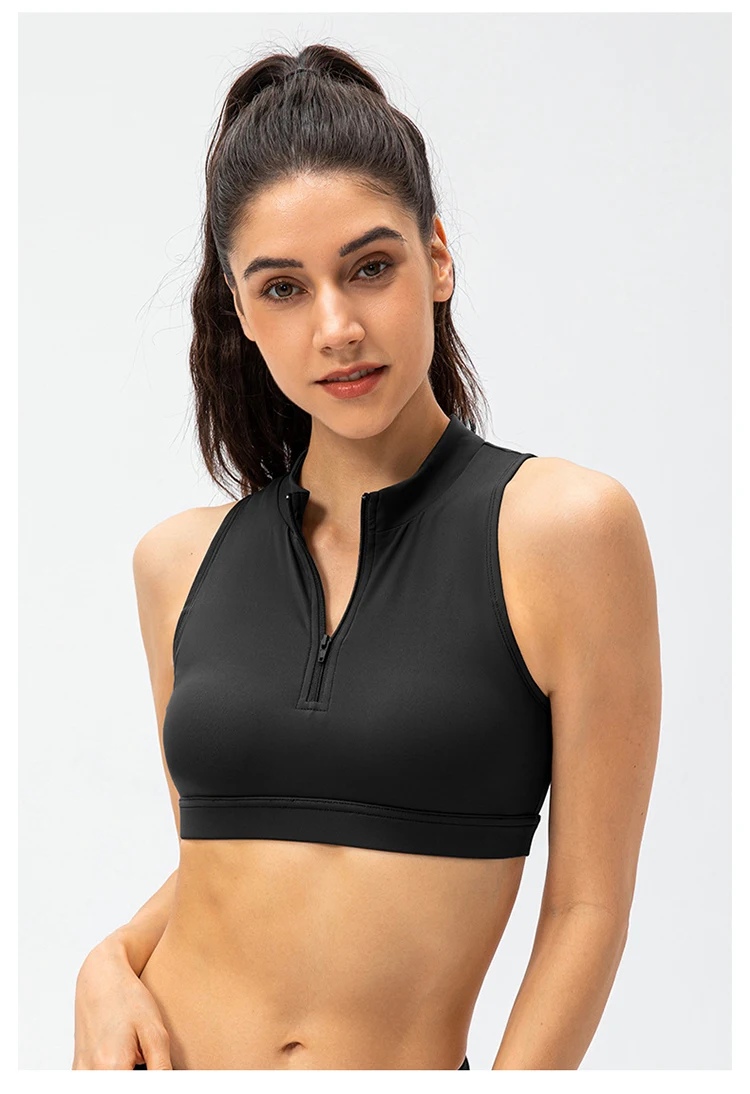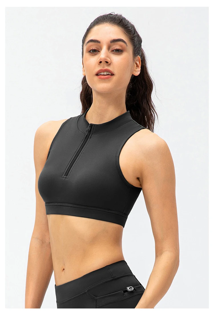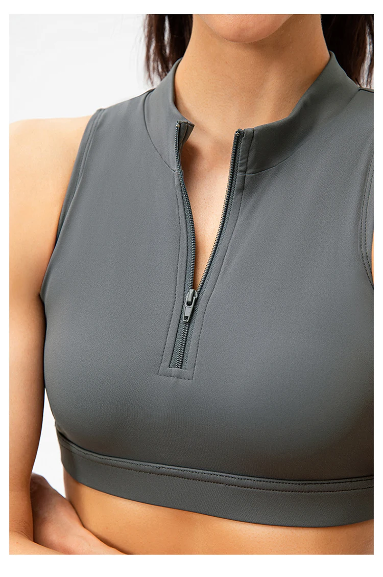 2024 Spring Zipper Stand Bra Fitness Vest With Chest Pad
