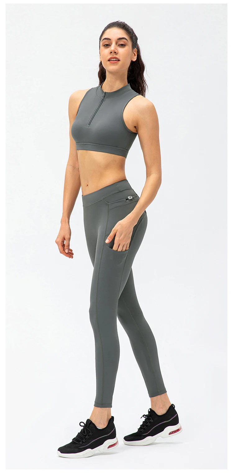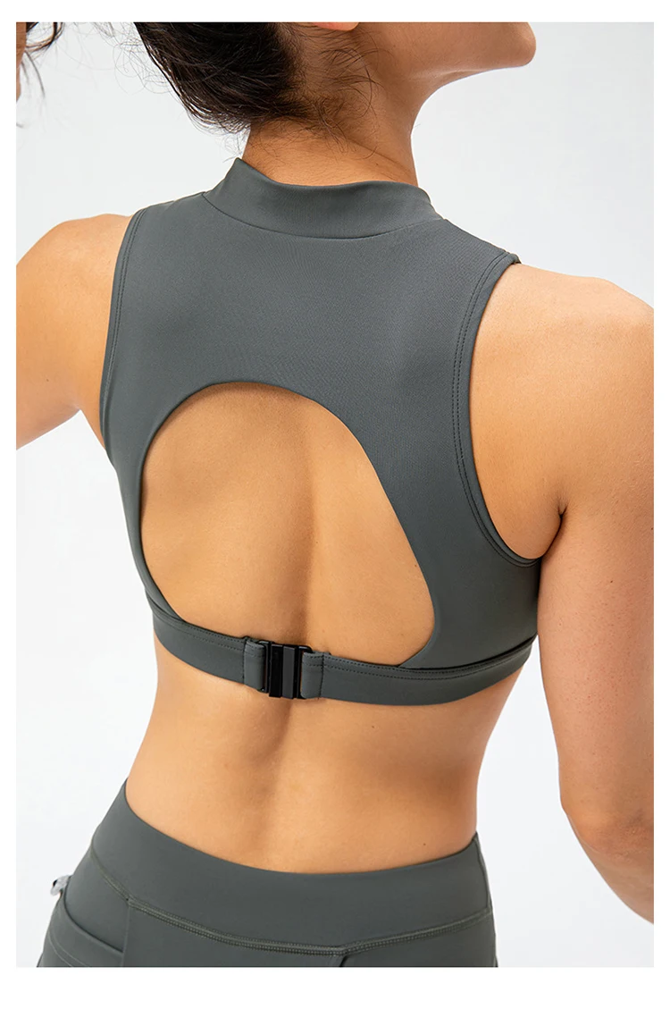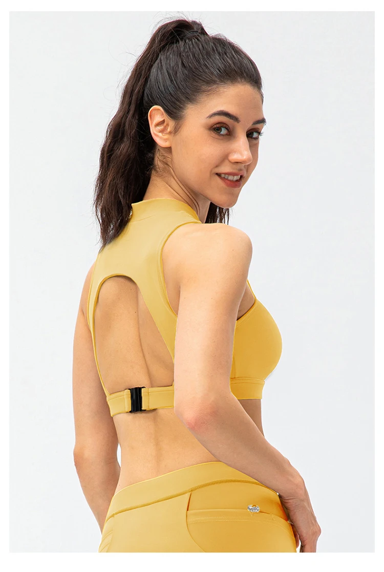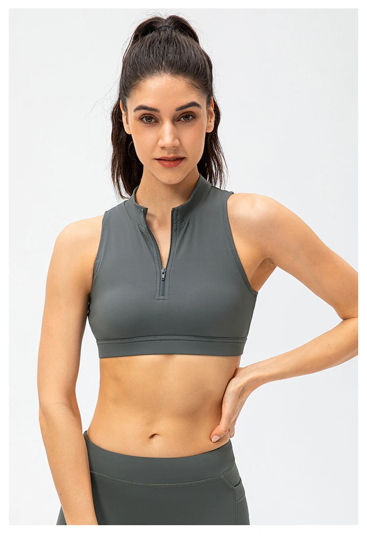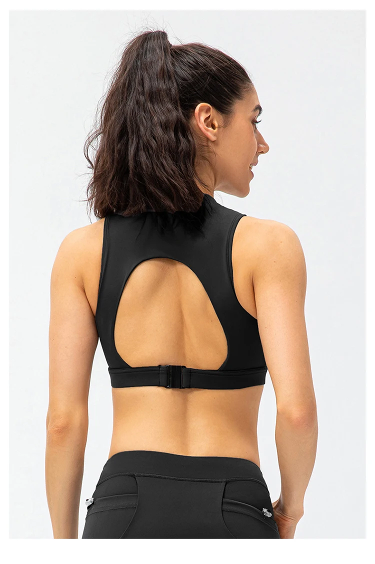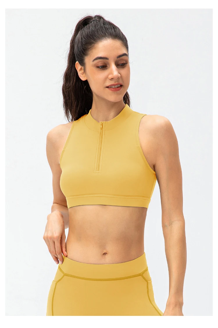 2024 Spring Zipper Stand Bra Fitness Vest With Chest Pad