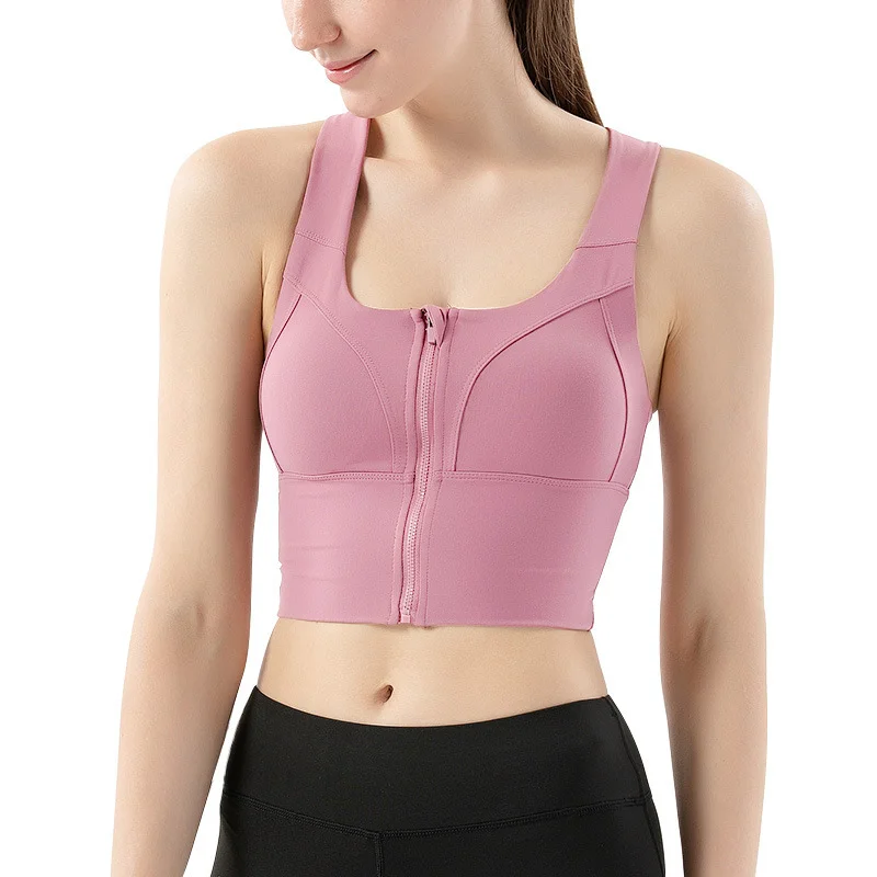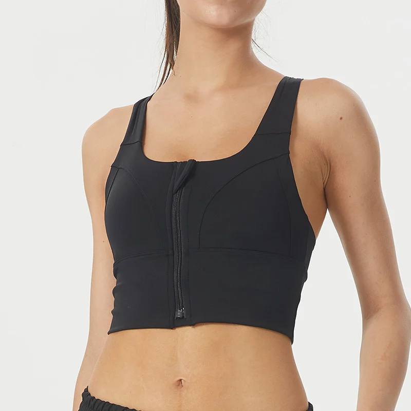 [Features]: Solid plain color, Camisole sports bra tank top, Full length front zipper, make this full coverage sports bra easy to pull and take off, Sexy U shape neckline and back design, Wireless comfort, Padded sports bra with removable pads, combine fashion, function and performance, Great for low, medium and high impact activites.