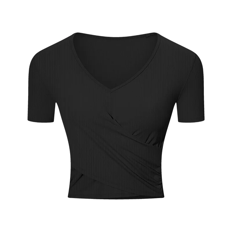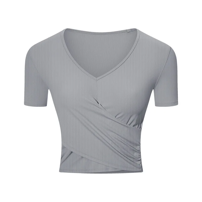 Be the first to review “Striped ribbed micro V-neck short sleeved yoga suit” Cancel reply