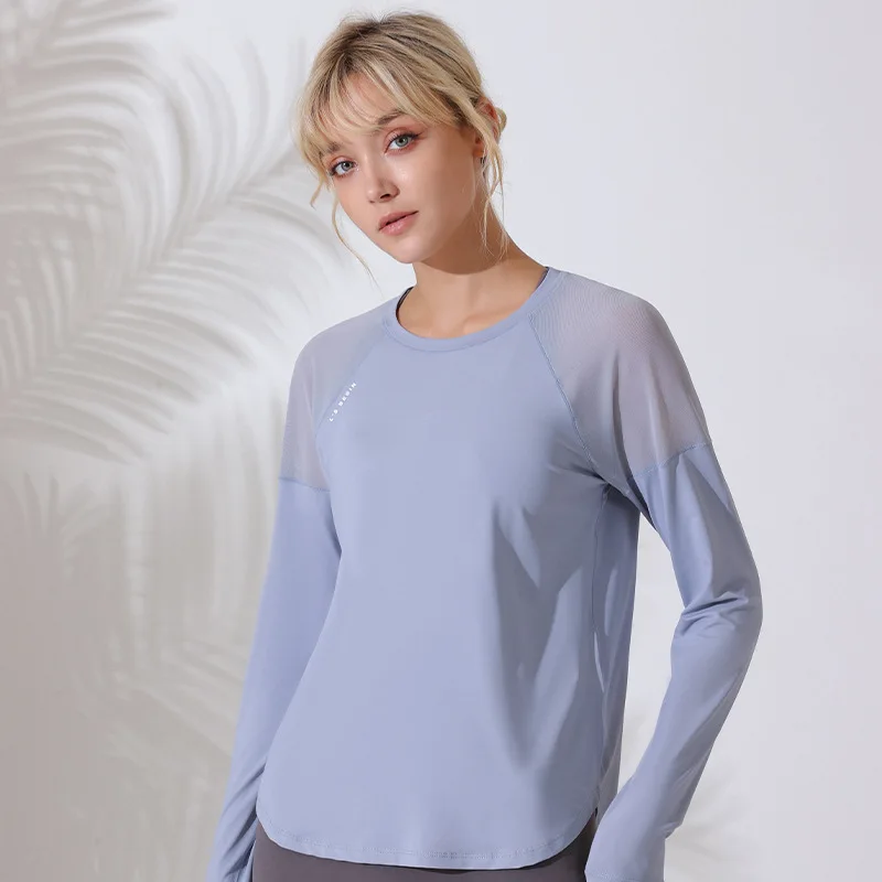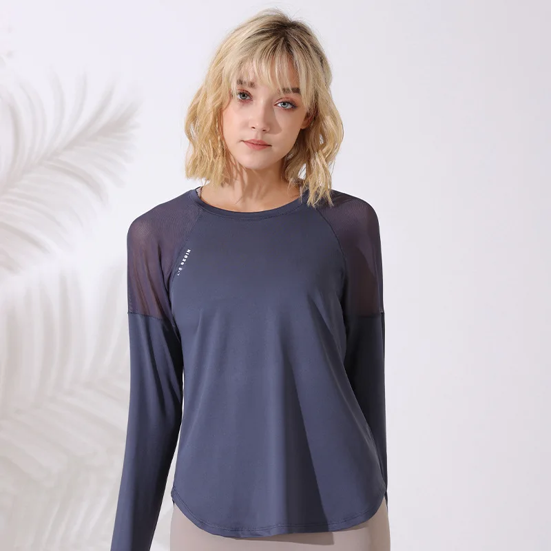 The round neck and semi-transparent mesh sleeves not only enhance breathability but also add a trendy touch to your activewear.