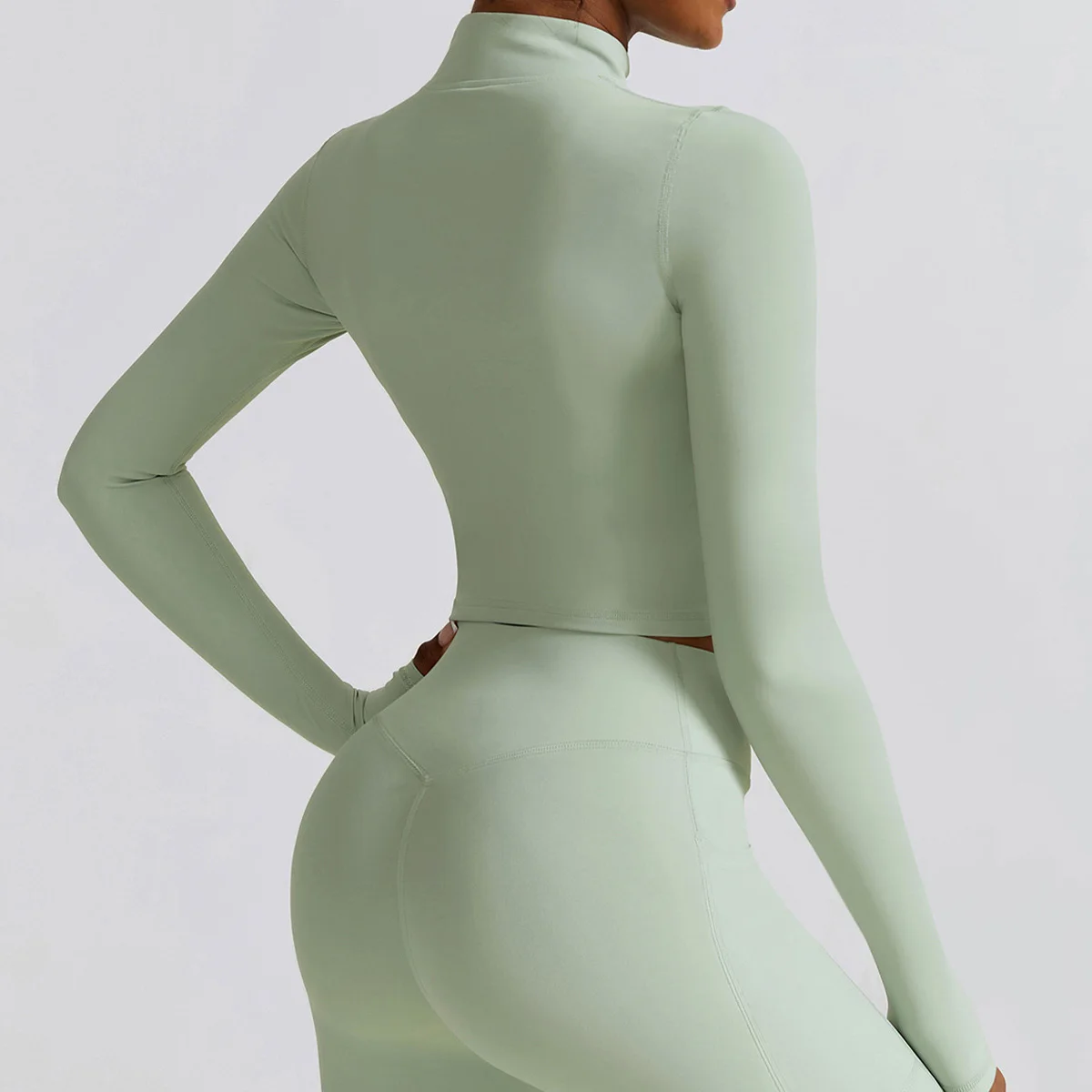 Long Sleeve Crop Top: Stylish cropped length with long sleeves, combining fashion with functionality.